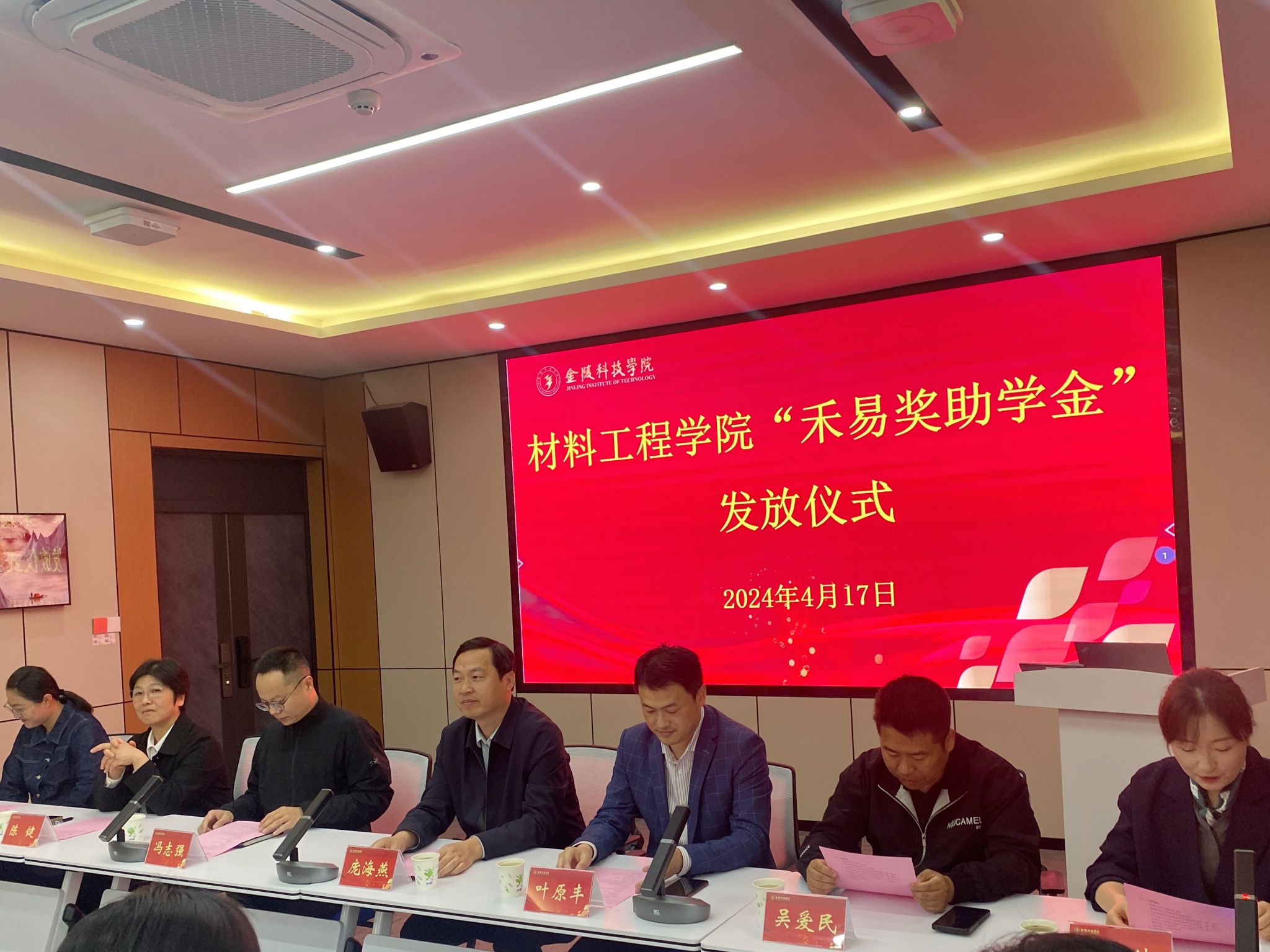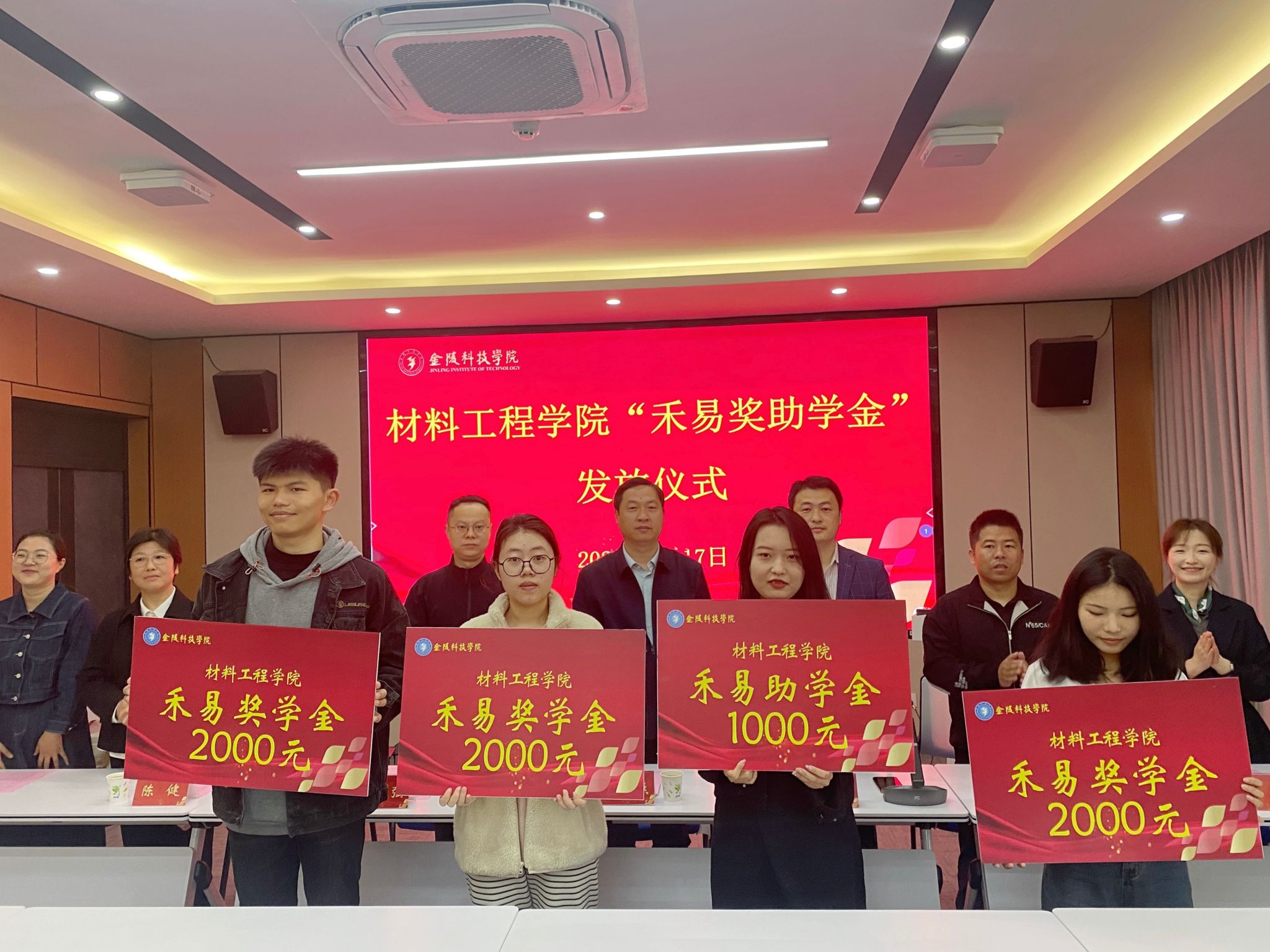4月17日上午,材料工程学院在知行楼A506会议室举行“禾易奖助学金”发放仪式。江苏禾易企业管理集团有限公司董事长、材料工程学院教师冯志强博士,江苏禾易企业管理集团有限公司副总经理薛从亚、市场部总监吴爱民,学校教育发展基金会理事长庞海燕,材料工程学院党委书记陈健、院长叶原丰,复材系系主任庞娟、支部书记王昆彦、部分专业教师与全体辅导员及获奖学生参加。仪式由学院党委副书记韩铖主持。