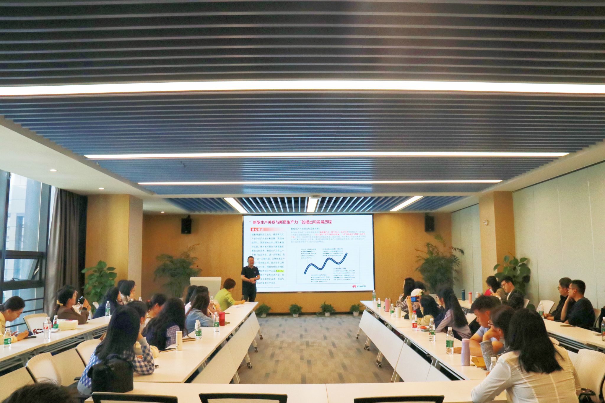 活动现场,华为大数据、网络安全认证工程师李鹏飞以《华为人工智能大模型和产业人才培养模式》为题,从公司建设发展情况、新质生产力与人工智能大模型、产业人才培养解决方案三个方面进行了讲解交流。本次学习既让老师们对人工智能这项推进新质生产力发展的最典型代表性技术有了深入的了解,同时也对人工智能赋能高校人才培养有了更立体的认识,对学生工作队伍如何借力人工智能培养更多优秀的青年大学生,以及提升自身的数字素养提供了深刻启发。