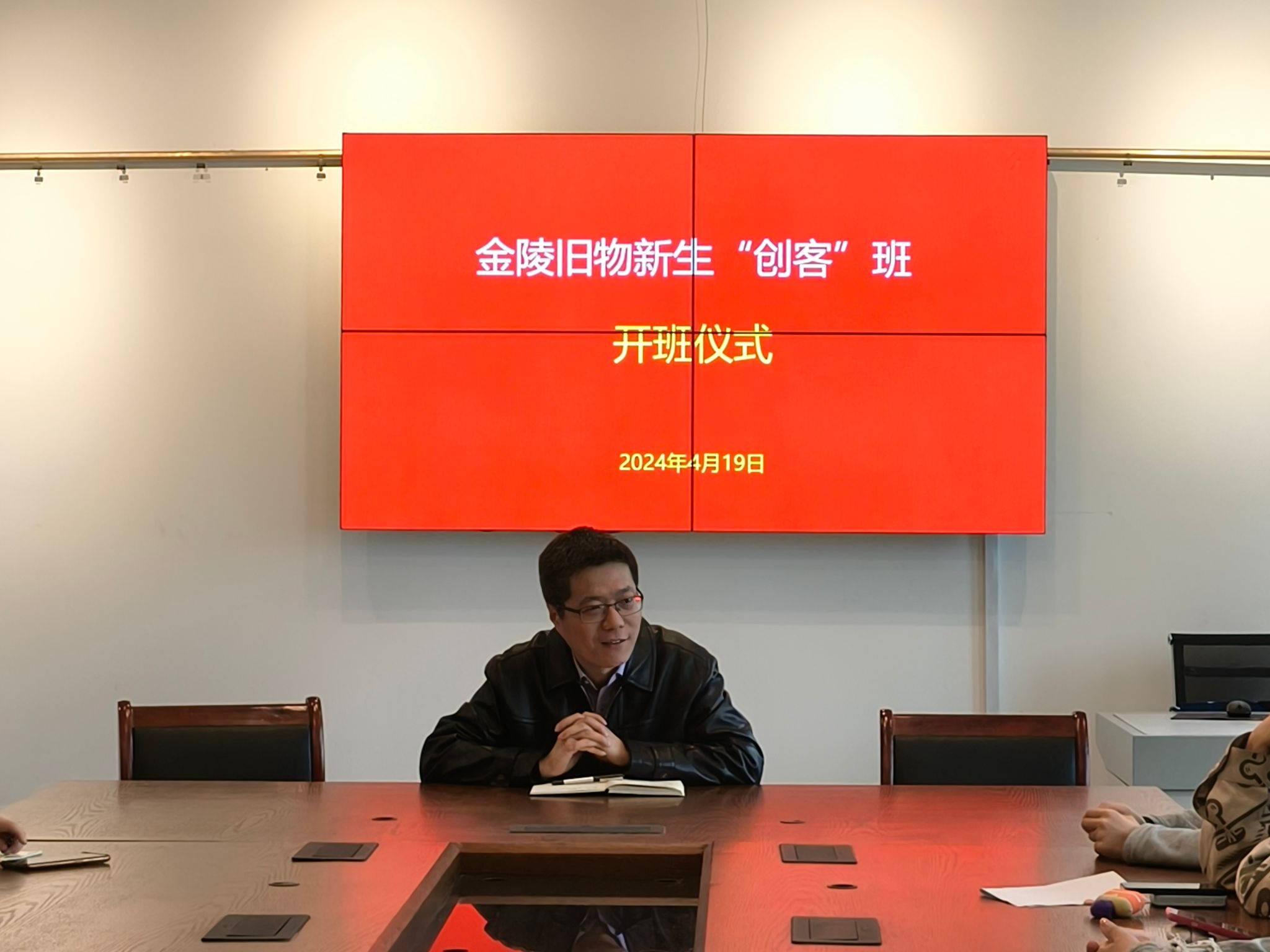 4月19日下午,艺术学院在6306会议室举行金陵旧物新生“创客”班开班仪式,艺术学院党委书记、院长匡才远,环境设计、艺术与科技专业优秀学生代表参加开班仪式。