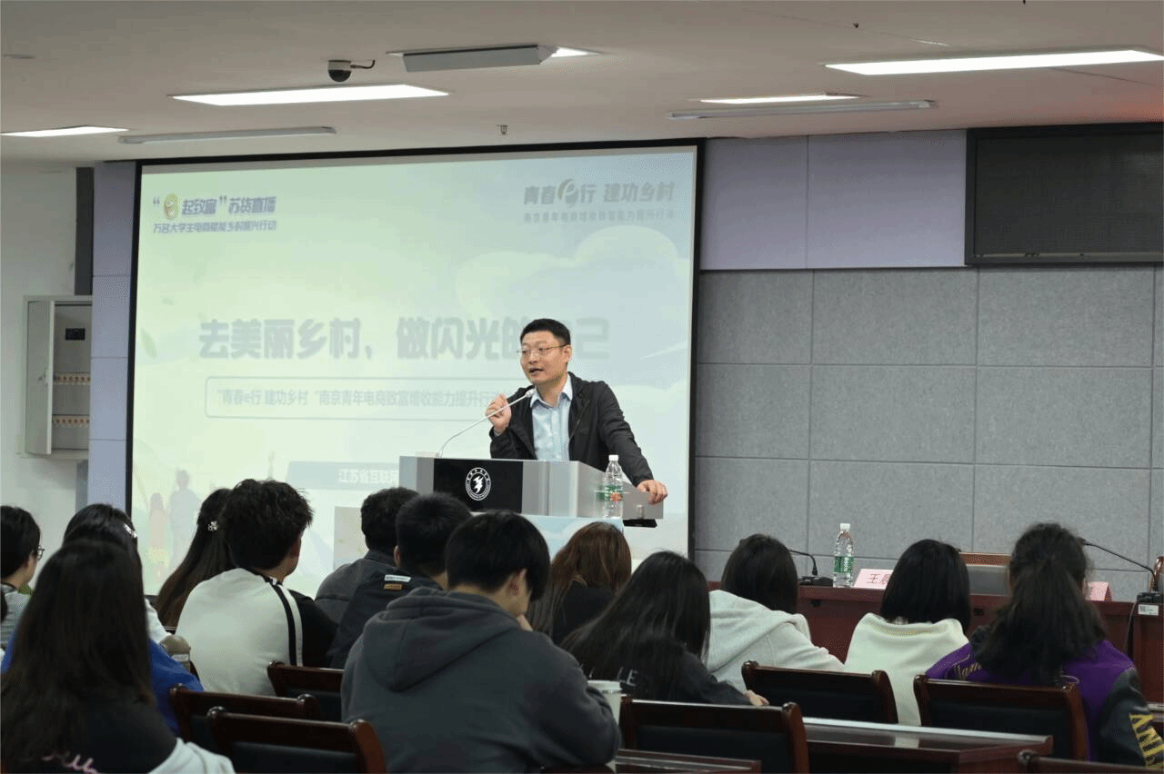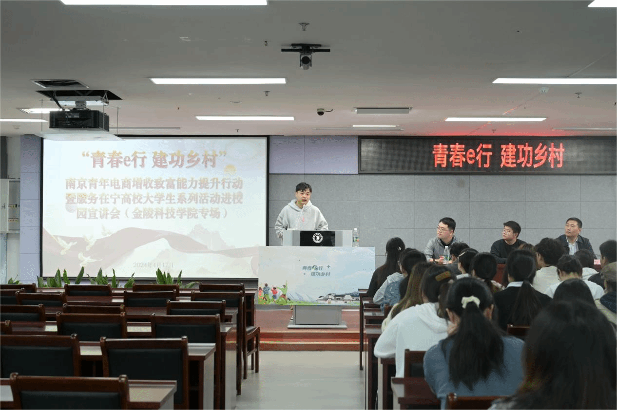 宣讲会上,孙亮致辞,对“青春e行·建功乡村”一行表示欢迎。他指出,活动旨在通过电商手段引导广大青年学生积极投身乡村建设,用青春的智慧和才干为乡村振兴贡献自己的力量。江宁团区委权发部胡克涵向学生讲解了“宁青驿站”的政策。微微一笑传媒有限公司董事长、南京行知微笑学堂院长谢恒义在会上介绍了近两年南京“青春e行”活动的主要成果和内容。
