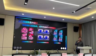 仪式结束,蒋止涯就“珠宝首饰AI设计与培育宝石生产工艺”为主题,为在场的师生带来了一场精彩的分享。他深入浅出地介绍了珠宝首饰设计的最新趋势和宝石生产工艺的创新发展,让师生们对珠宝行业的前景充满期待。