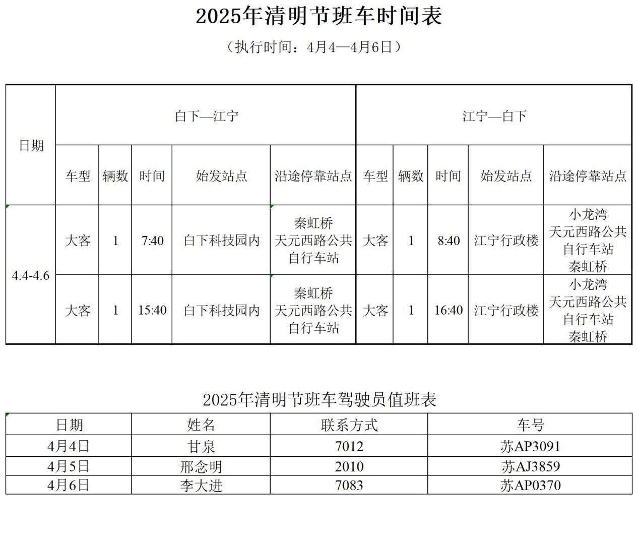 关于2025年清明节班车时间安排的通知