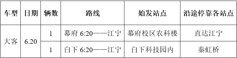 根据学校工作安排,为保障毕业生典礼暨学士学位授予仪式工作人员出行,计划于6月20日上午6:20增发2辆班车,具体安排如下: