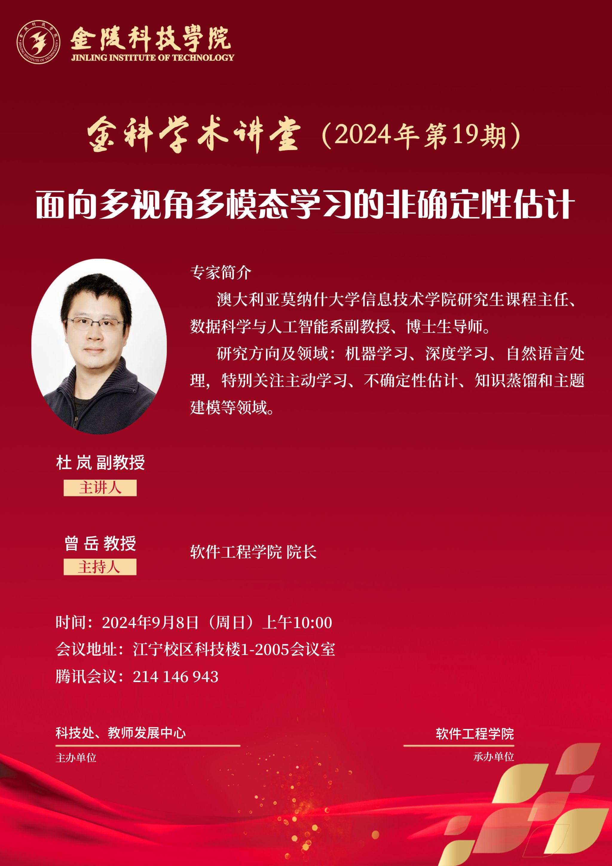 关于举办线下“金科学术讲堂——面向多视角多模态学习的非确定性估计”学术报告的通知