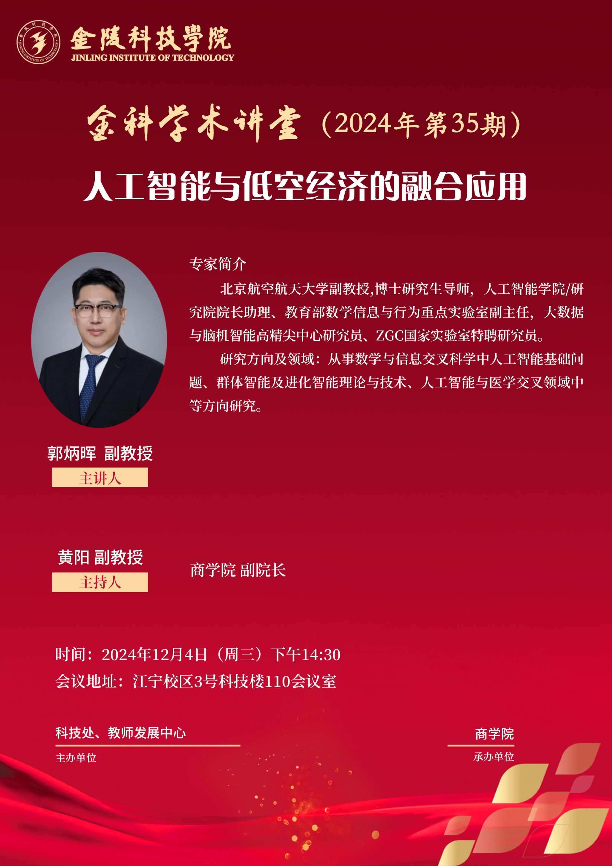 关于举办线下“金科学术讲堂——人工智能与低空经济的融合应用”学术报告的通知