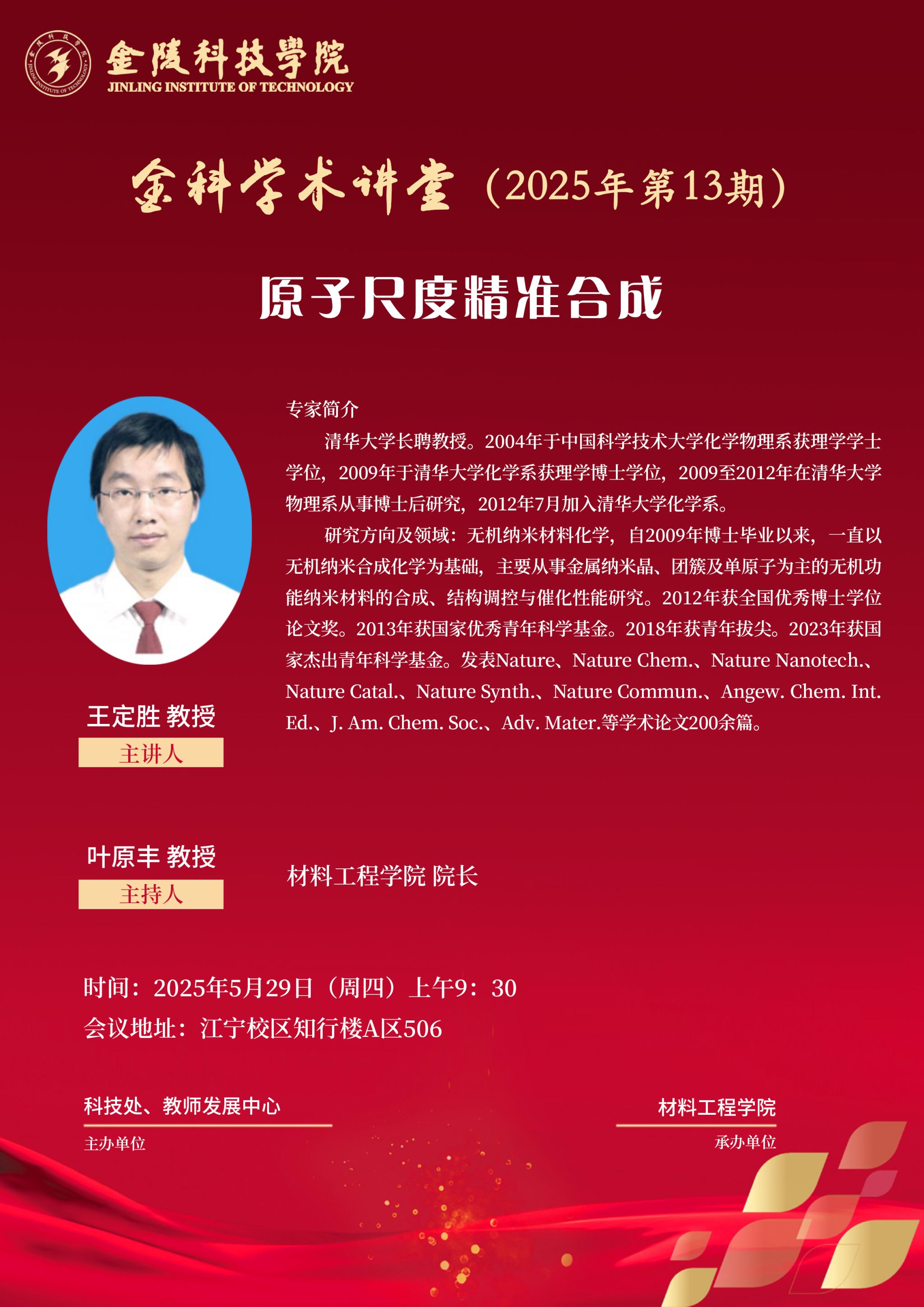 关于举办线下“金科学术讲堂——原子尺度精准合成”学术报告的通知