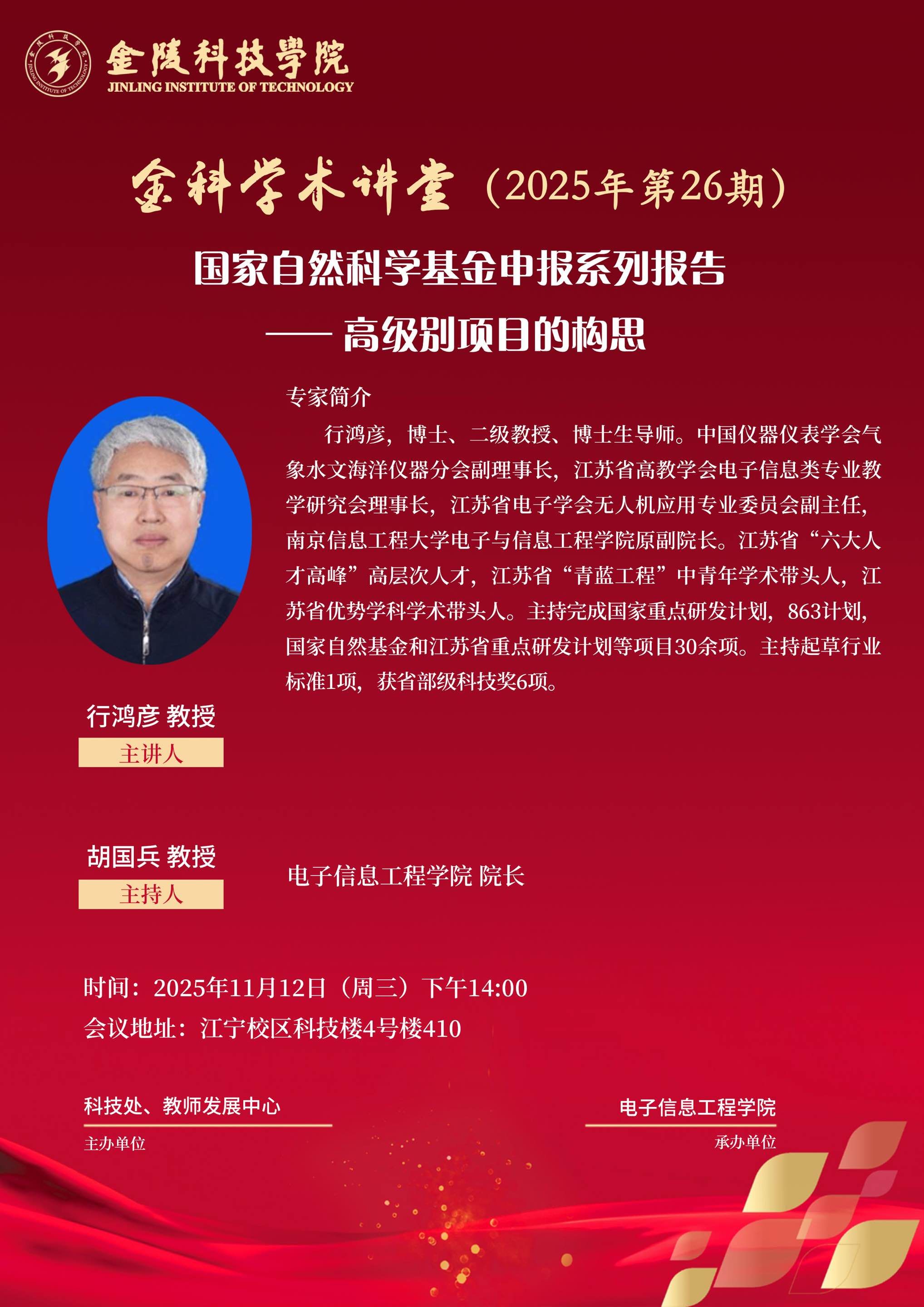 关于举办线下“金科学术讲堂:国家自然科学基金申报系列报告——高级别项目的构思”学术报告的通知